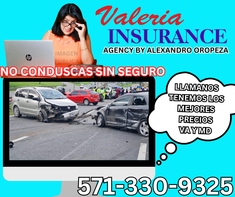 SOMOS VALERIA INSURANCE OFRECEMOS LAS MEJORES COBERTURAS Y PRECIOS EN EL AREA DE VIRGINIA Y MARYLAND